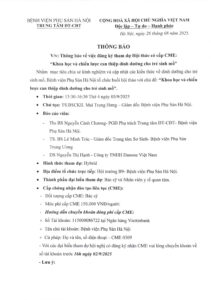 THÔNG BÁO về việc đăng ký tham dự Hội thảo có cấp CME: